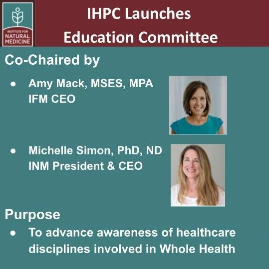 INM President & CEO, Michelle Simon, PhD, ND, Co-Chairs IHPC Education Committee